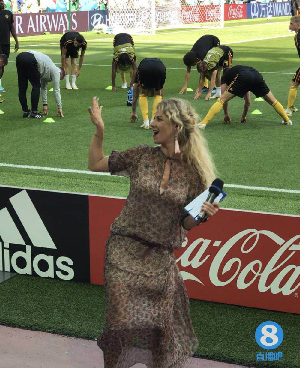 (图:比利时女主持在场边热舞)