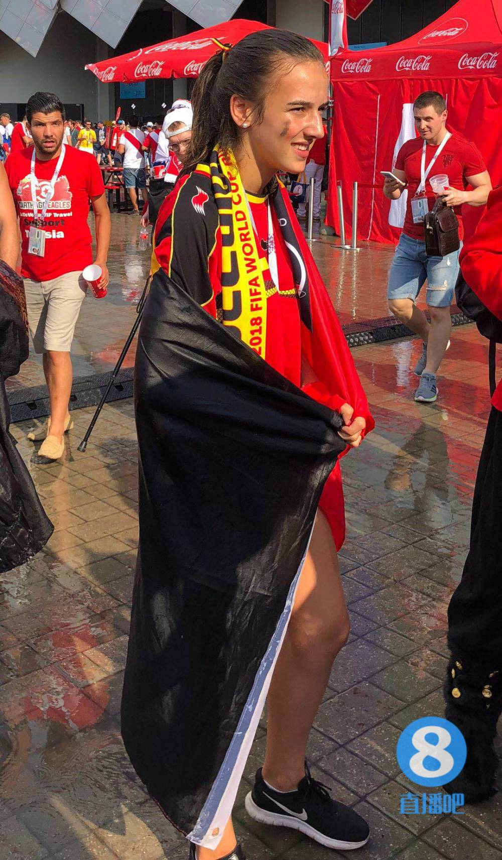 比赛结束后,小雨变成了暴雨,其间还夹杂着冰雹。记者们站在通道口躲雨,赢球的比利时球迷才不管这些,他们大踏步冲进了雨中,和其他比利时球迷击掌庆祝胜利,任凭头发衣服被淋湿、脸上的油彩被冲花。一些嘴碎的比利时球迷看到突尼斯球迷,会冲他们挥手,嘴里喊着“拜拜,拜拜”。